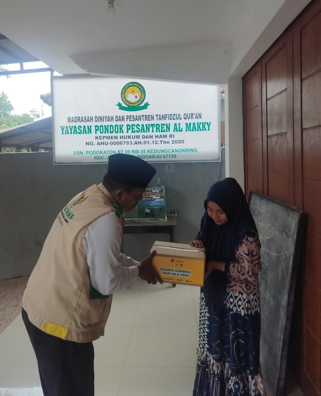 Di PP Al Makky, penyerahan dilakukan di ruang tamu yang sederhana namun penuh kehangatan. Shofwan tidak hanya menyerahkan paket bantuan, tetapi juga memberikan edukasi singkat tentang pentingnya protein hewani bagi kesehatan dan konsentrasi dalam menghafal Al-Quran.