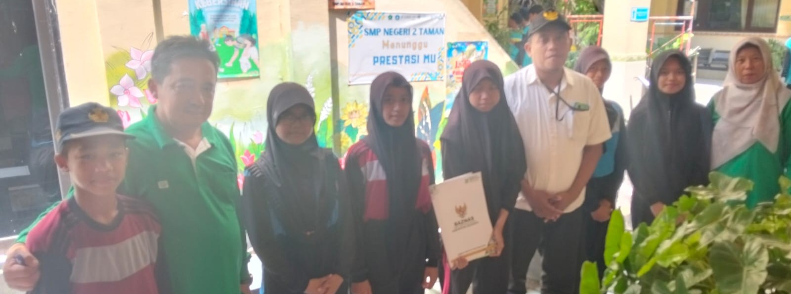Sidoarjo, 10 Desember 2025 – Rabu yang cerah di penghujung tahun menjadi momen penuh makna bagi sepuluh siswa kurang mampu di SMP Negeri 2 Taman. Bertempat di lingkungan sekolah yang asri, Badan Amil Zakat Nasional (BAZNAS) Kabupaten Sidoarjo kembali menunjukkan komitmennya dalam pilar pendidikan melalui penyaluran bantuan biaya pendidikan. Bantuan ini diserahkan langsung kepada 10 siswa yang namanya telah terdata, disaksikan langsung oleh Kepala Sekolah SMPN 2 Taman, Bapak Sujono, S.Pd.