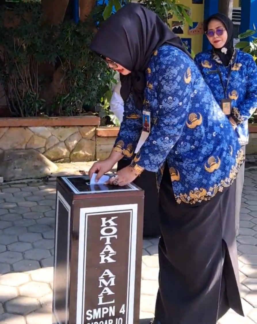 SIDOARJO – 18 Des 2025,  Jarak ribuan kilometer antara Sidoarjo dan Sumatera bukan menjadi penghalang bagi rasa kemanusiaan. Keluarga besar SMPN 4 Sidoarjo membuktikan hal tersebut melalui aksi nyata penggalangan dana untuk membantu korban bencana yang melanda wilayah Sumatera. Tidak sekadar mengumpulkan rupiah, aksi ini menjadi momentum penting dalam menanamkan nilai-nilai karakter dan kepedulian sosial sejak dini.