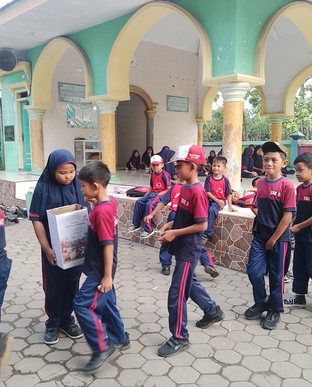 Suasana di halaman sekolah dipenuhi kehangatan dan semangat gotong royong yang luar biasa. Para siswa, dengan antusiasme yang tulus dan tertib, berbaris satu per satu menyalurkan donasi terbaik mereka. Dengan wajah polos namun penuh kesadaran, mereka memasukkan uang yang mereka kumpulkan ke dalam kotak amal.