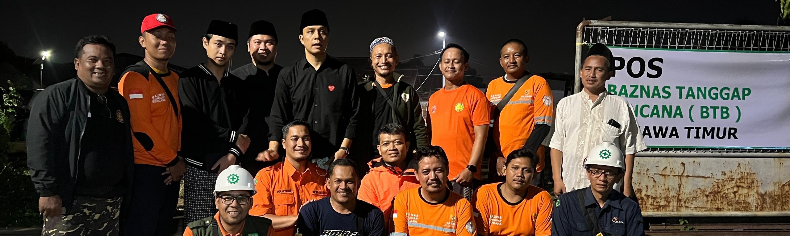 Di belakangnya, para relawan BTB Jatim—mengenakan seragam oranye—berdiri dengan wajah penuh hormat. Mereka adalah tim gabungan dari BAZNAS Jawa Timur, Sidoarjo, Jombang, Trenggalek, Madiun, dan Probolinggo, serta didukung Rumah Sehat BAZNAS Al-Chusnaini dan relawan lokal seperti Santri Al Hamdaniyah dan Fatayat NU. Mereka bekerja 24 jam nonstop: membersihkan puing, menyediakan dapur umum, layanan medis, hingga pendampingan psikologis.