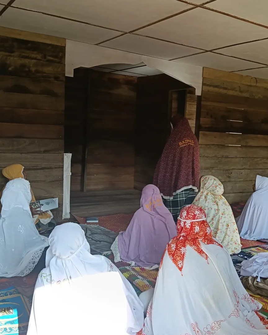 Pagi itu, ruangan mushala dipenuhi oleh ibu-ibu warga Desa Babo. Mengenakan mukena putih bersih—bantuan dari BAZNAS RI yang difasilitasi oleh BAZNAS Sidoarjo—mereka larut dalam rangkaian Shalat Tasbih. Lantunan tasbih, tahmid, dan takbir menggema syahdu, memecah keheningan desa yang sempat terkoyak banjir bandang beberapa waktu lalu. Momen ini menjadi simbol penghambaan sekaligus rasa syukur yang mendalam atas hadirnya kembali rumah Allah di tengah-tengah mereka.