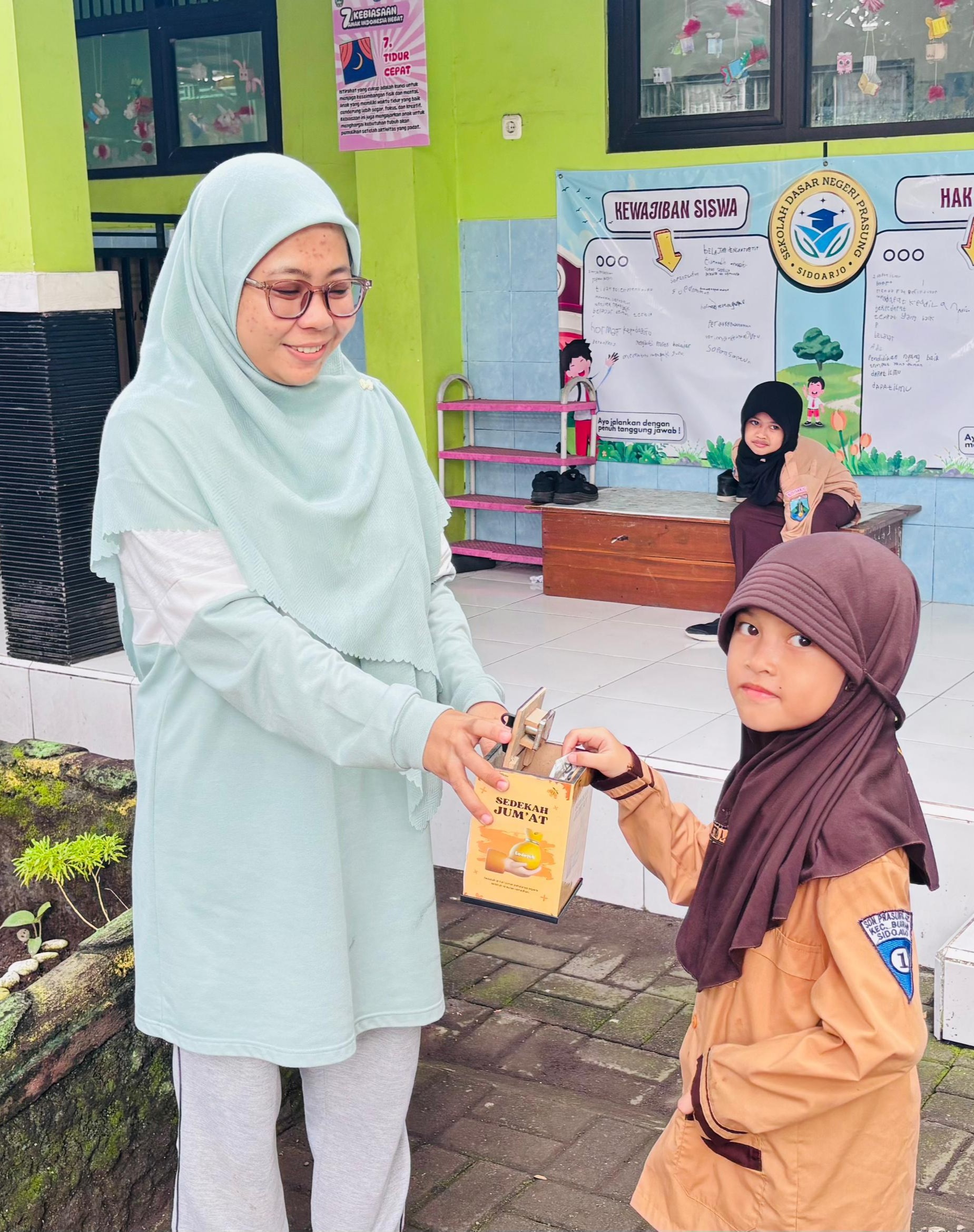 Setiap siswa, dengan wajah serius dan mata berbinar, menyisihkan uang tabungan atau uang saku mereka. Beberapa anak tampak gugup, tangannya gemetar saat memasukkan lembaran uang ke dalam kotak amal bertuliskan “Sedekah Jum’at”. Itulah bukti nyata: kepedulian bukan soal nominal, tapi soal niat yang suci dan hati yang tulus.