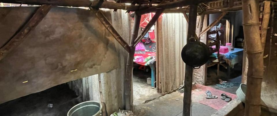 Kondisinya memprihatinkan. Langit-langitnya begitu rendah, memaksa siapa pun yang masuk untuk menunduk, seolah mencerminkan beban hidup yang dipikul penghuninya. Dindingnya hanya susunan kayu seadanya dengan celah yang membiarkan angin malam menusuk tulang, sementara kakinya setiap hari harus bersentuhan langsung dengan lantai tanah yang lembap.