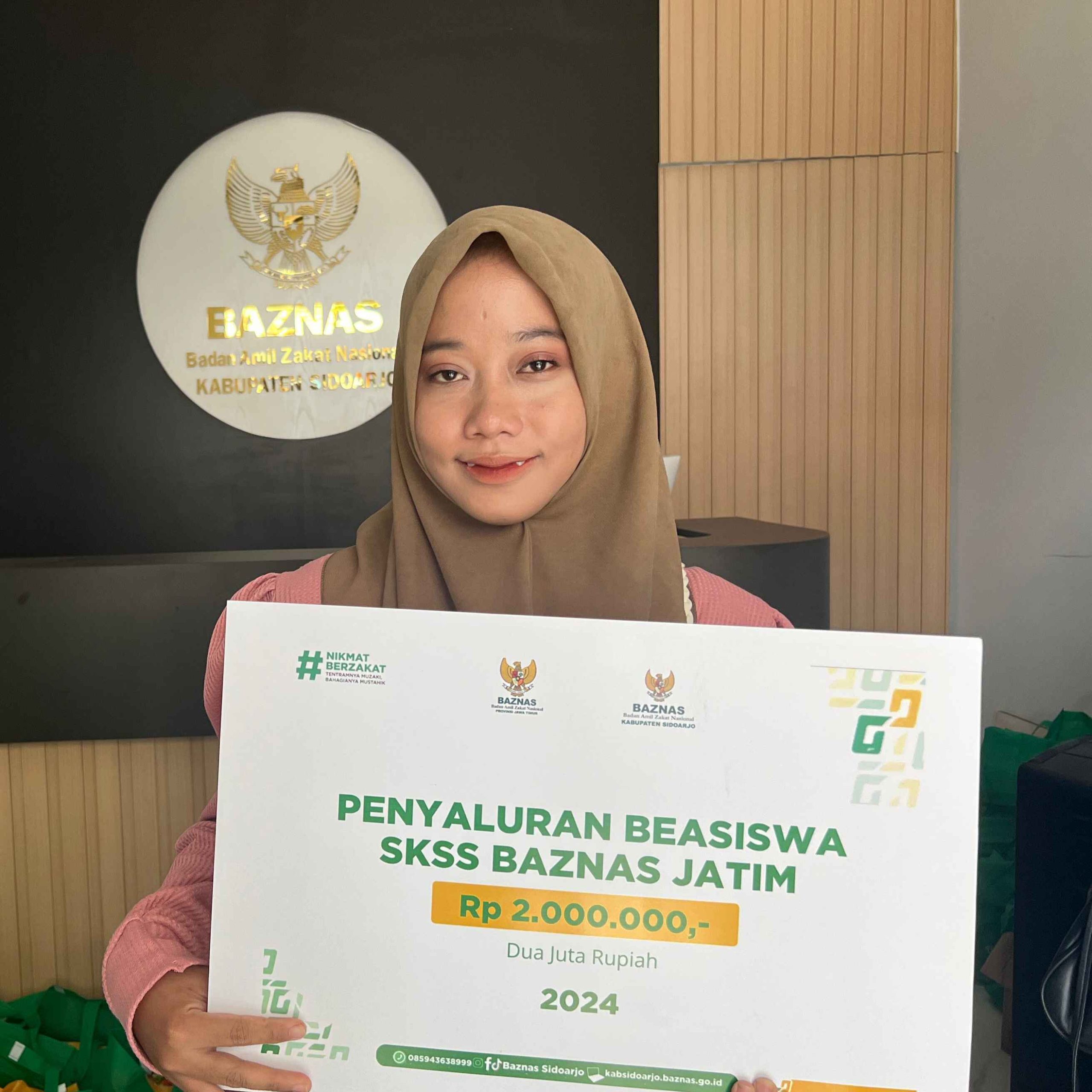 Sidoarjo, 13 Januari 2025 – Di tengah tantangan pendidikan yang kian berat, Baznas Sidoarjo menuntaskan program Beasiswa Satu Keluarga Satu Sarjana (SKSS) tahun 2024.Program ini, dibiayai oleh Baznas propinsi Jatim. SKSS ini bertujuan memberikan kesempatan kepada mahasiswa dari keluarga yang belum memiliki sarjana untuk melanjutkan pendidikan tinggi. Sebanyak 9 mahasiswa dari tiga perguruan tinggi di Sidoarjo, yaitu IAI Alkhoziny Buduran, STAI An-Najah Mandiri, dan Universitas Nahdlatul Ulama’ Sidoarjo (Unusida), terpilih untuk menerima beasiswa ini.