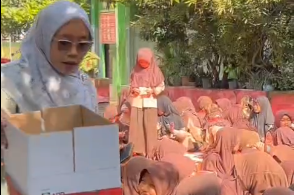 Aksi penggalangan donasi dilakukan secara simbolis. Para guru dan siswa perwakilan berkeliling membawa kotak-kotak bekas kemasan makanan ringan, yang telah disiapkan sebagai wadah untuk sumbangan. Satu per satu, siswa-siswa kecil itu dengan antusias melemparkan uang tabungan mereka ke dalam kotak. Beberapa siswa bahkan tampak memegang uang dengan tangan gemetar, menunjukkan betapa serius dan tulus niat mereka.