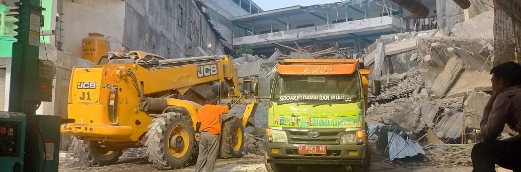 Sejak Selasa (2/10) sore, Tim SAR gabungan di bawah koordinasi BASARNAS resmi mengerahkan alat berat untuk mempercepat pencarian korban yang masih tertimbun. Langkah krusial ini diawali dengan pemasangan *shoring*—struktur penyangga dari plat besi—di area reruntuhan beton guna mencegah pergerakan struktur yang berpotensi membahayakan tim penyelamat maupun korban. Excavator dan crane mulai mengangkat material berat, sementara truk dari Dinas Lingkungan Hidup dan Kebersihan (DLHK) Sidoarjo mengangkut puing ke lokasi pembuangan yang telah ditentukan.