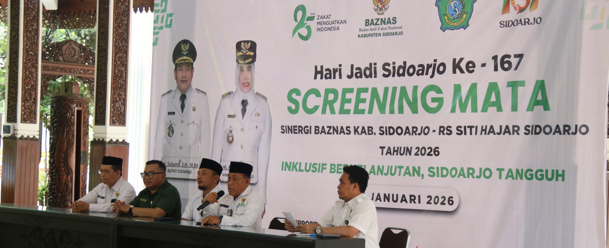 SIDOARJO – Zakat Menguatkan Indonesia. Kalimat ini bukan sekadar narasi kampanye nasional, melainkan ruh yang menggerakkan setiap langkah Badan Amil Zakat Nasional (BAZNAS) Kabupaten Sidoarjo untuk hadir di tengah kesulitan warga. Semangat inilah yang terpancar kuat di Pendopo Delta Wibawa pada Rabu (14/1/2026), saat BAZNAS Sidoarjo menyelenggarakan program screening kesehatan mata dan operasi katarak gratis dalam rangka menyambut Hari Jadi Kabupaten Sidoarjo (Harjasda) ke-167.